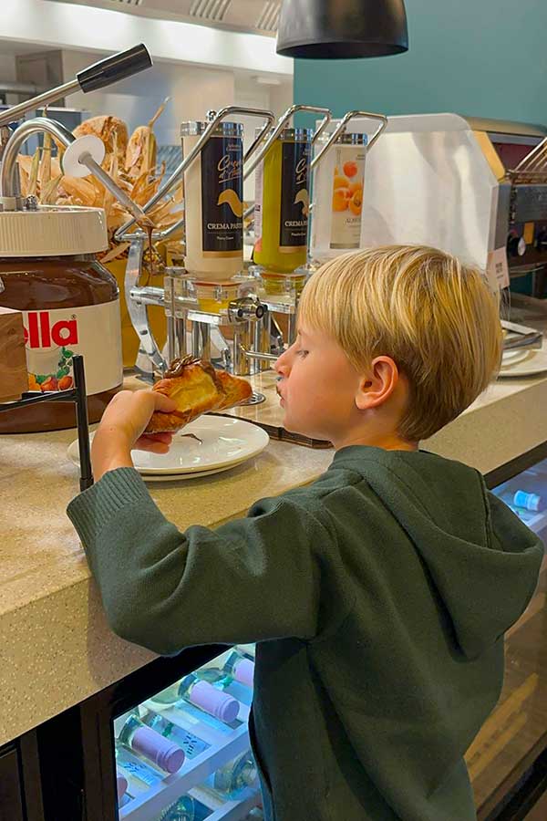 Oltre alla camera silenziosa e spaziosa, con bagno privato, asciugamani e ottimi prodotti per il corpo, abbiamo particolarmente apprezzato la gentilezza del personale giovane internazionale e la colazione da sogno che ci attendeva la mattina: uova, bacon, pane tostato, salumi, formaggi, yogurt, cereali, marmellate, creme spalmabili, torte, brioches, piccola pasticceria, bevande calde e fredde…pensate ad un desiderio e verrà esaudito! Tutto il cibo è freschissimo, preparato sul momento nella grande cucina a vista che non nasconde segreti.