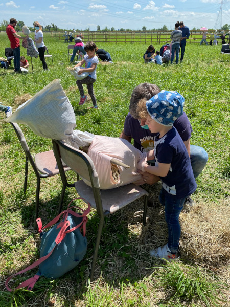 Terminata la visita era in programma un laboratorio sul fieno, nel corso del quale, i bimbi, dovevano incollare erba e fieno su una simpatica scheda. Qui, tutti gli insegnamenti passano attraverso il gioco e sono pensati per coinvolgere e far partecipare, ovviamente secondo le proprie capacità, bambini di diverse fasce d’età.