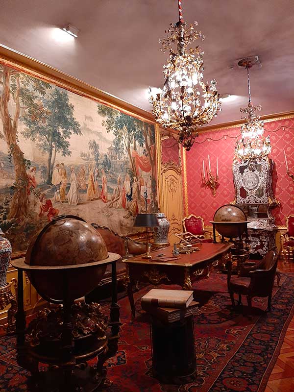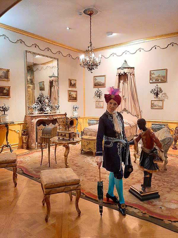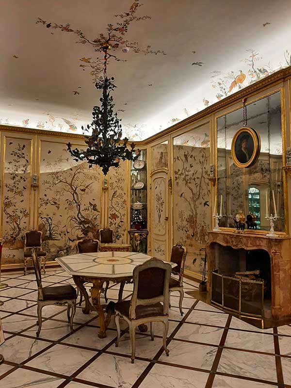 Da qui in avanti è tutto un susseguirsi di salotti con cineserie, mobili Luigi XVI e Luigi XV, camere da letto veneziane, tappezzerie con uccelli e fiori che fanno sembrare la stanza un incantevole giardino d’inverno. Alcune curiosità attirano l’attenzione dei più piccoli: un gabinetto nascosto in un comodino da letto e un gabbia con degli uccellini cantanti, frutto di un ingegnoso meccanismo.