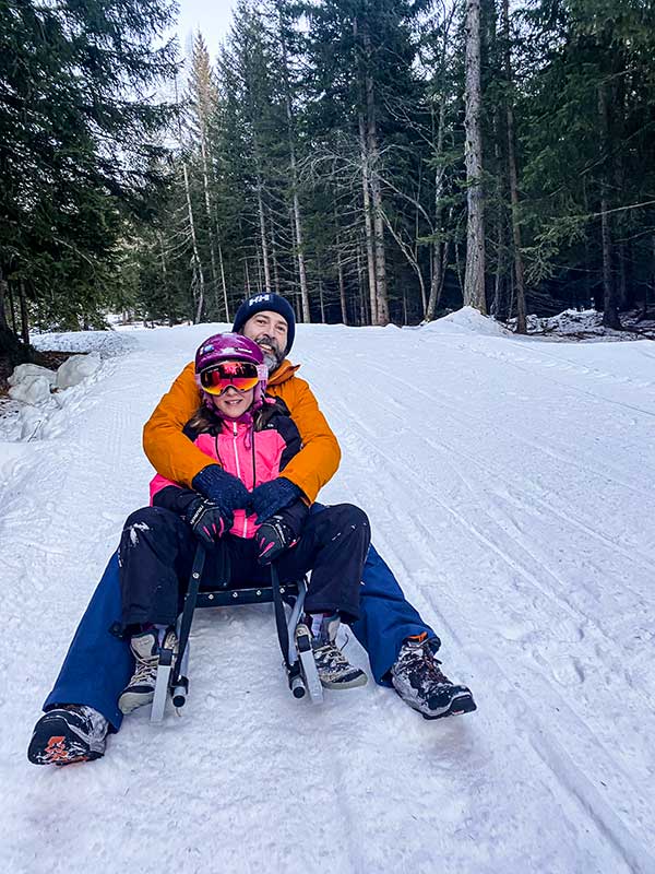 Abbiamo trascorso una giornata immersa nei boschi dell’Alpe Lusia, tra piste da sci e slittino. Le psite blu sono state molto apprezzate dai nostri bimbi, ma quando hanno provato la pista da slittino Fraina il commento è stato: “Che figata, lo rifacciamo?”.