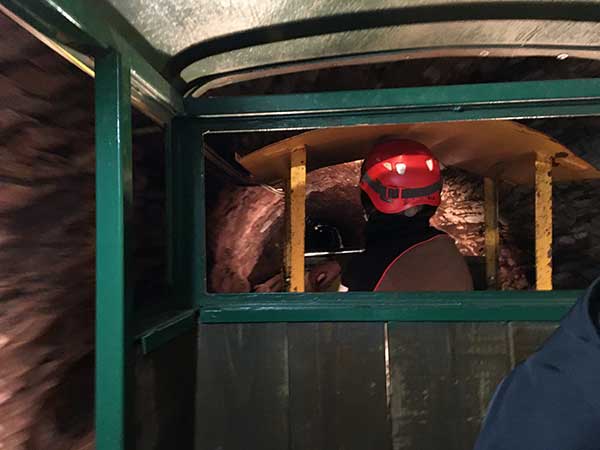 Per noi visitatori invece il treno porta all’interno della miniera per un tratto di circa 15 minuti.