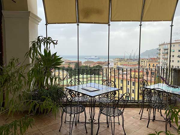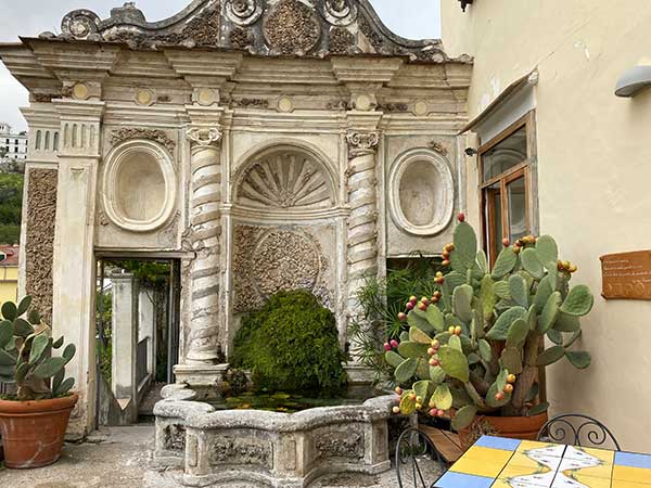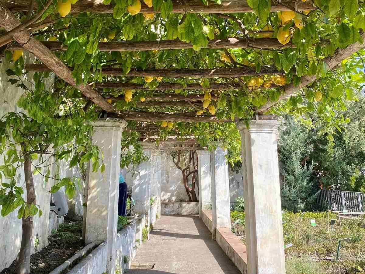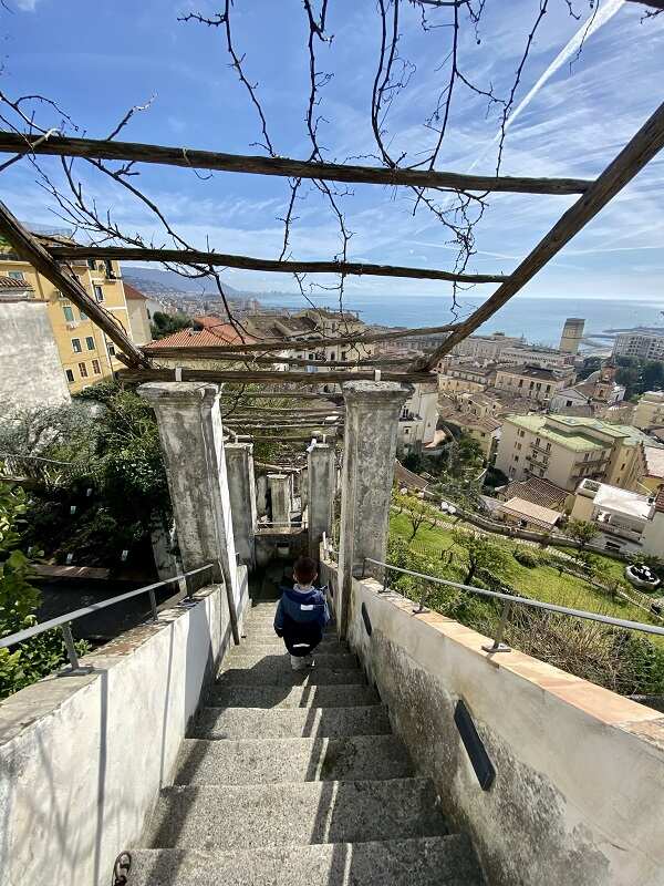 Man mano che si sale e si supera una terrazza, il golfo di Salerno si vede limpido davanti ai nostri occhi mentre di lato puoi affacciarti sul bellissimo giardino