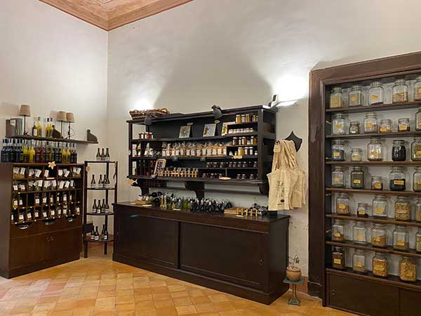 C’è anche un bookshop con i gadget realizzati dalla Fondazione Scuola Medica Salernitana, da oggetti realizzati artigianalmente dall’associazione culturale “I Colori del Mediterraneo” (che opera con le piante tintorie) e da articoli che la Nemus realizza ispirandosi alla tradizione della Scuola Medica Salernitana.