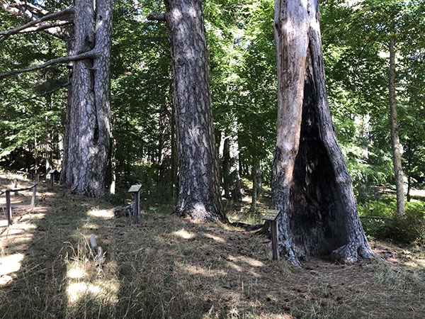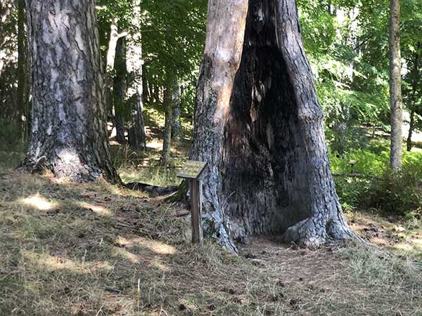 Lungo questo percorso di circa un chilometro ci sono 58 pini larici – o anche chiamati pini neri di Calabria- . Sono alberi secolari, che hanno dai 350 ai 400 anni, e sono alti 45 metri. Ma c’è anche una foresta giovane, nata spontaneamente, con pini di 120 -130 anni.