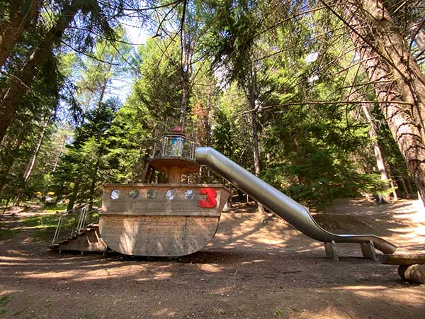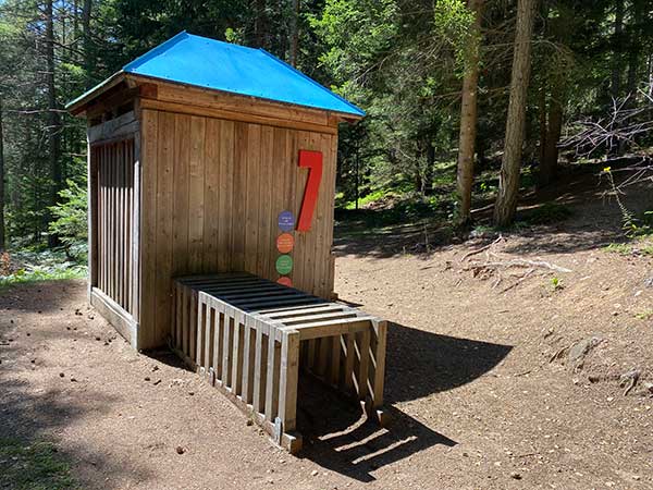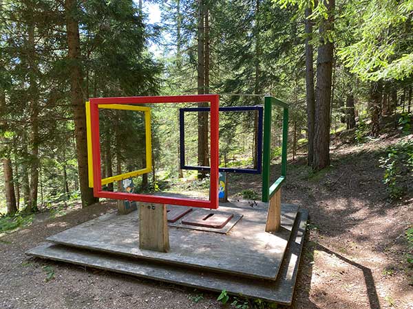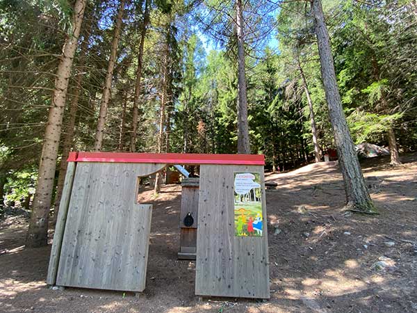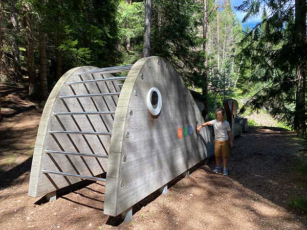 I giochi, realizzati interamente in larice, sono ad accesso gratuito e collocati in un bosco, quindi sempre fresco e silenzioso. D’estate è davvero un posto refrigerante.