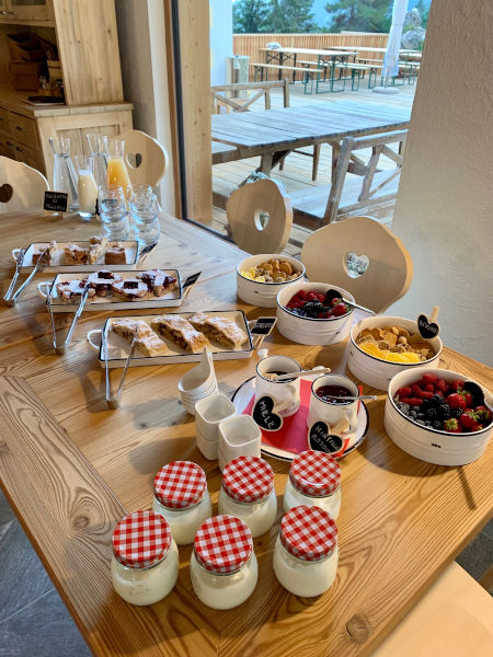 Non pensavo che Mia e Clelia riuscissero a svegliarsi alle 5 del mattino e invece l’euforia di tornare in stalla le ha messe in piedi senza problemi. Ed eccoci nuovamente a Malga Couler a ripetere l’operazione della sera prima: raduno del bestiame e mungitura ammirando l’alba. E poi tutti a tavola con la colazione preparata da Ivana a base di torte, strudel, biscotti (quelli di polenta sono pazzeschi!), yogurt e frutti di bosco accompagnati da succhi e sciroppi artigianali.