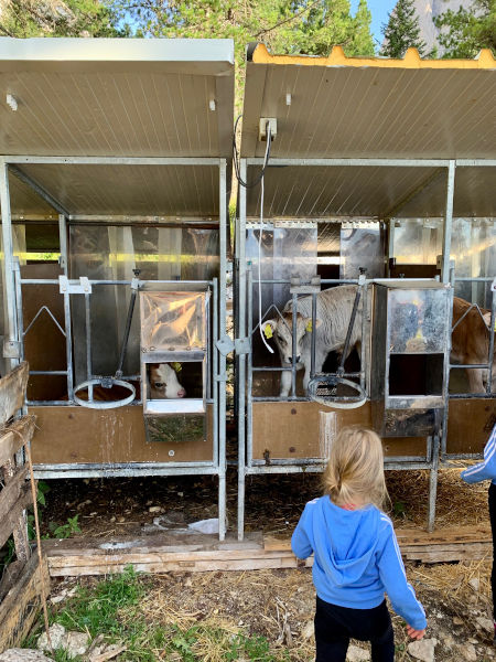 Nel tardo pomeriggio abbiamo accompagnato Stefan al pascolo a radunare le vacche. Dove ci ha raccontato che al momento sono circa 30 le mucche che danno buon latte di malga. In alta quota mangiano erba migliore, piante e fiori di montagna e questo fa la differenza. Inutile dire che in questo grande prato le bimbe erano al settimo cielo, potersi avvicinare e accarezzale il bestiame è sempre molto affascinante.