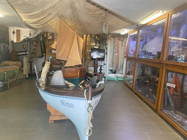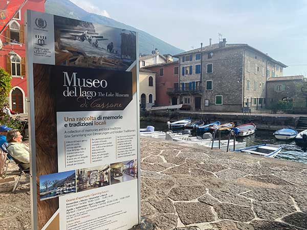 Proprio sul porticciolo di Cassone, trovare il Museo del Lago e della pesca”, è un museo piccolino, dove ci sono barche e sono esposti attrezzi antichi da pesca, strumenti di lavoro quotidiano, foto, quaderni e anche delle vasche con alcune specie ittiche: trote, cavedani e anguille che ricordano la destinazione di questo edificio nel passato per l’allevamento dei pesci.