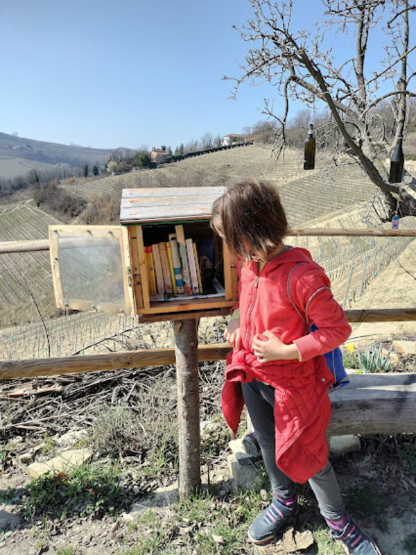 Lungo la passeggiata abbiamo potuto osservare anche molte tane e tracce di animali che vivono il territorio come il riccio, la volpe, il tasso e abbiamo potuto sostare lungo sulle panchine accanto alle postazioni di bookcrossing (portate un libro e prendetene uno se volete!). Nel sentiero non ci sono fontane alberi quindi se lo percorrerete in una giornata di sole non dimenticate borracce e crema solare. Se come noi siete amanti dei picnic, a fine percorso, previa richiesta a Marzia o a Gisella potete fermarvi a pranzare su un bel tavolone all’ombra messo a disposizione da uno dei residenti.