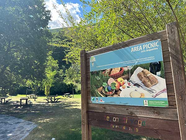 Noi dopo la visita alle grotte del Cavallone abbiamo fatto una passeggiata al percorso natura delle Acque vive a pochi chilometri. L’ingresso al percorso è gratuito Se volete qui si possono anche affittare i tavoli per i pic-nic (15 euro per una giornata). Potete mettere i piedi nell’acqua ghiacciata del fiume Aventino e ci sono due parchi giochi. Una buona idea per scaricare energie e riposarsi dopo l’intensa mattinata di escursione.
