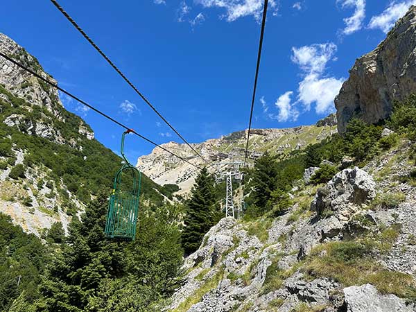 In ogni cesto si può salire in due. Il panorama è stupendo. Il tragitto dura circa 20 minuti e si arriva in località Colle Rotondo. La cestovia procede lenta, non oscilla molto, ma ovviamente se soffrite di vertigini può essere impegnativa, perché provate l’ebbrezza di sentirsi sospesi nel vuoto.