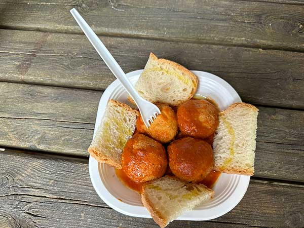Noi abbiamo iniziato la nostra escursione intorno alle 11 e abbiamo terminato alle 13.30 quindi quando siamo arrivati di nuovo alla partenza della funivia eravamo affamati e ci siamo fermati a mangiare al rifugio del Cavallone. Arrosticini e pallotte cacio e ova, ma ci sono anche formaggi e panini. Anche qui ragazzi gentili e disponibili. Sono aperti anche la sera e fanno ricette locali a base di tartufo.