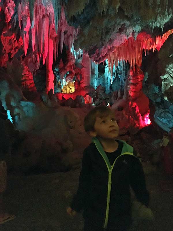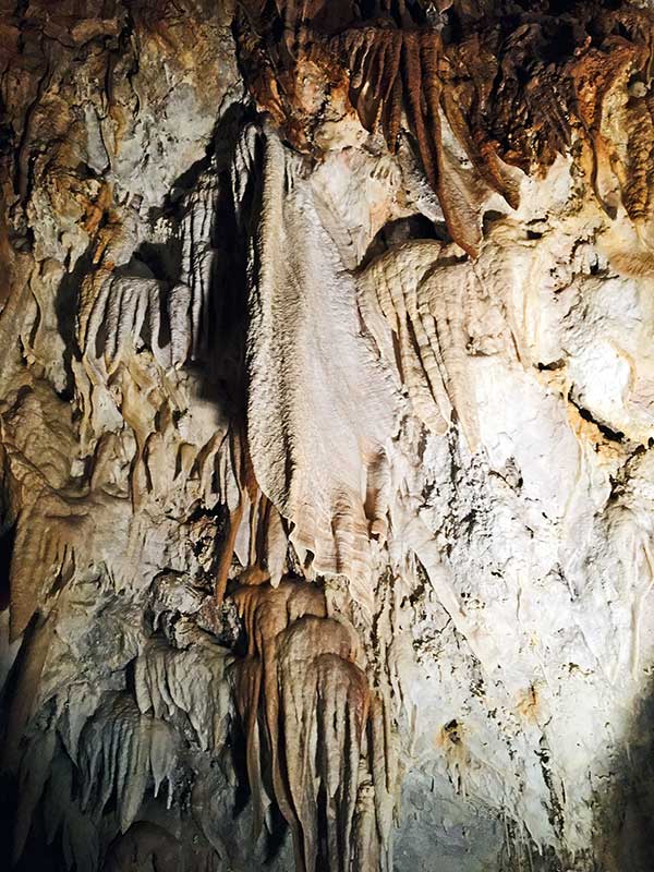 Naturalmente alla spiegazione della nostra guida che le grotte esistevano già prima dei dinosauri è partito il secondo “oh” di meraviglia del piccolo, ma un po’ anche nostra.