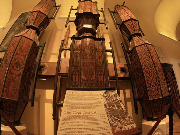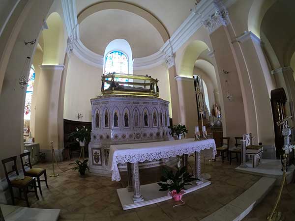 La nostra visita a Gubbio con i bambini non inizia immediatamente dalla città, ma decidiamo di gustarci il panorama a circa 600 metri di altezza per visitare la basilica di Sant’ Ubaldo. La raggiungiamo con un mezzo particolarissimo: la funivia. In un piccolo cestello entriamo tutti e 3. Per chi non soffre le altezze la vista è da togliere il fiato. Devo dire che anche Emma ha seguito le indicazione ed è stata ferma per la durata del tragitto, forse tra i 5 e i 6 minuti, infiniti per chi ha fifa. La basilica con le sue 5 navate è meravigliosa e sull’altare neogotico si può ammirare il corpo perfettamente conservato di Ubaldo, patrono di Gubbio morto nel 1160. Nella basilica sono inoltre conservate gli enormi ceri protagonisti della festa religiosa del 15 maggio. La festa consiste nel trasporto in corsa di tre Ceri coronati da statue di Santi: sant’Ubaldo (patrono di Gubbio), san Giorgio e sant’Antonio Abate. I ceri con le statue pesano anche 200 chili e vengono portate di corsa dai “ceraioli” per oltre 4 chilometri evitando cadute e sorpassi.