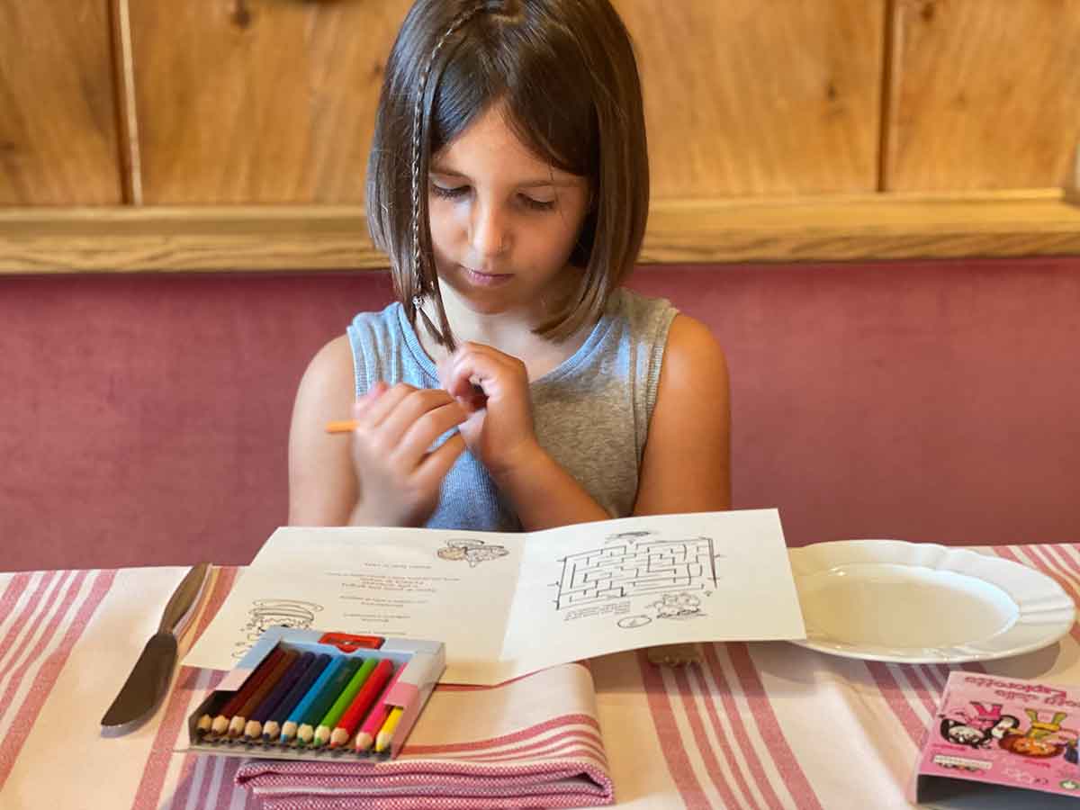 Ultimo dettaglio che è piaciuto moltissimo ai bambini: gli Aquilotti. Lo stemma del Tyrol hotel è una grande e regale aquila, ma per i bambini, è nato Otto l’aquilotto, personaggio che anima i menù con disegni da colorare e piccoli rompicapo da risolvere.
