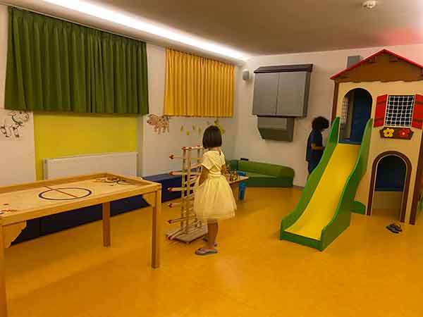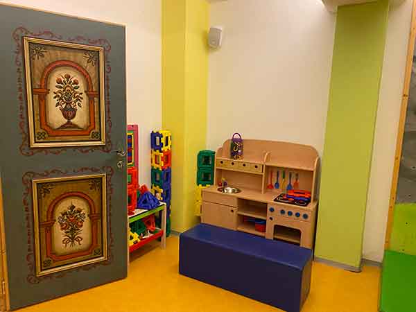 Come ho detto non c’è animazione, ma Enrico e Giulia hanno trascorso moltissimo tempo nelle due sale giochi, una con scivolo, maxi mattoncini di costruzioni e antichi giochi in legno e una per ragazzini più grandicelli con biliardino e tavolo da ping-pong.
