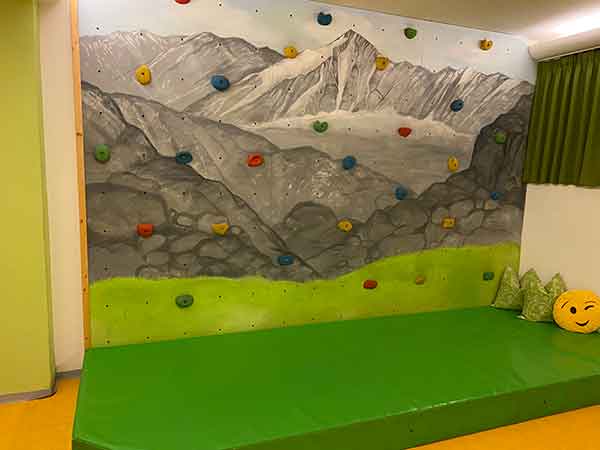 C’è il beauty & wellness Paravis Tyrol con piscina riscaldata a 30 gradi, saune, idromassaggio interno ed esterno, bagni turchi, grotta salina, area relax con lettini ad acqua e selezione di tisane, a cui possono accedere tutti gli ospiti e poi c’è una zona wellness su prenotazione, con bagno nel vino caldo o massaggi al cioccolato anche per bambini.