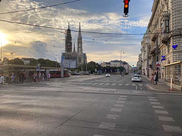 Il giro è quasi finito, perché alla successiva curva a destra il tram si immette sulla strada di partenza, puntando Schwedenplatz.