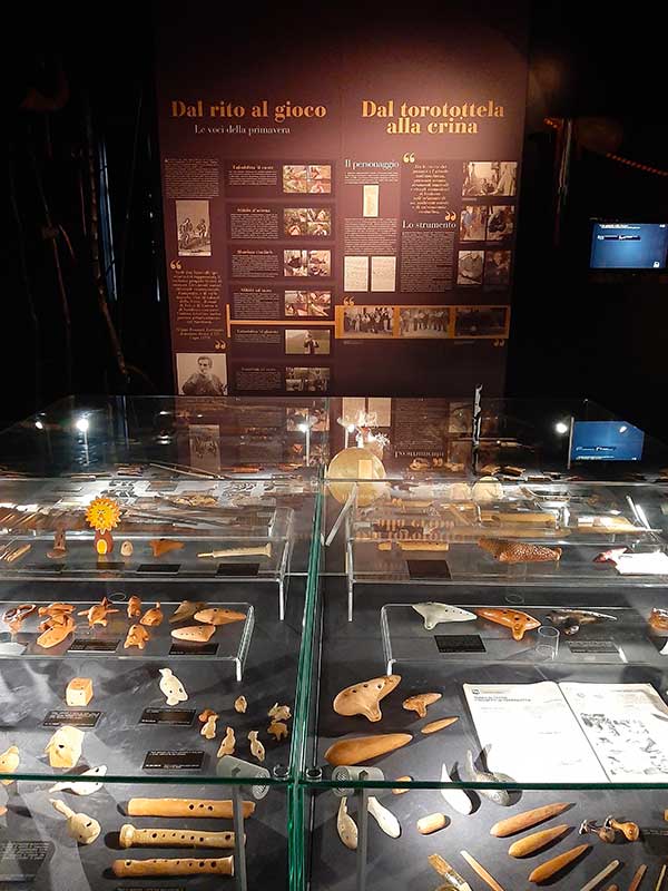 Un luogo unico, dove si può ammirare una raccolta di tutto ciò che nella tradizione è stato usato per produrre suoni e musica: piccoli strumenti creati a partire da conchiglie, noci, zucche essiccate, argilla, legno o altro materiale che si trovava in natura. Un grande insegnamento e una vera fonte di ispirazione : osservare il quotidiano e gli oggetti che ne fanno parte per trasformarli in qualcosa di diverso, il riciclo come miccia per la creatività.