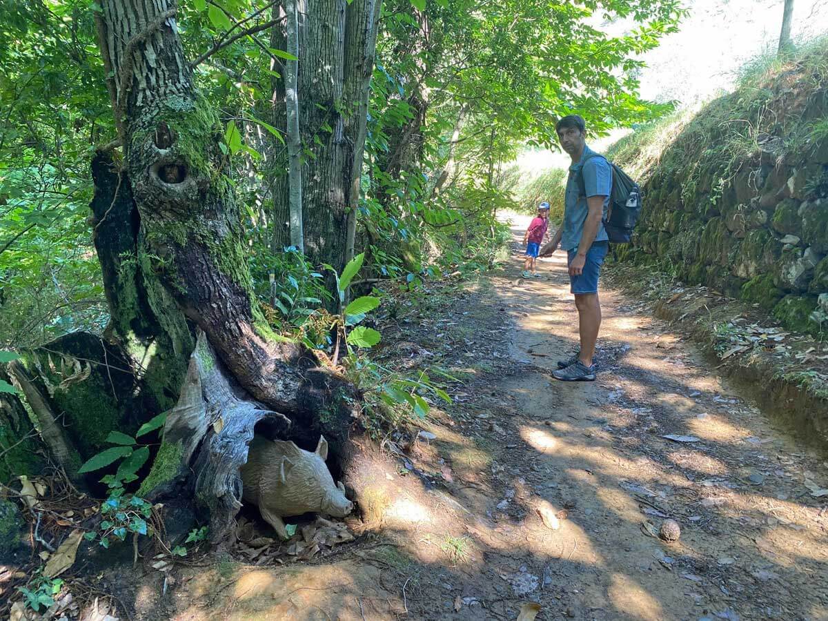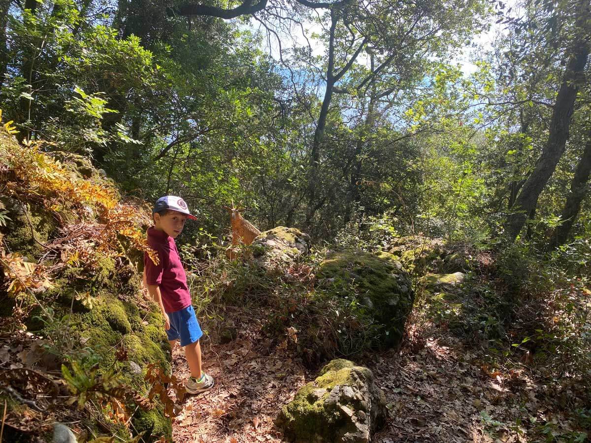 Attenzione: le statue degli animali non sempre sono ben visibili perché, da bravi animali del bosco, spesso si mimetizzano con l’ambiente circostante: dentro una cavità, sopra un albero, tra i cespugli…