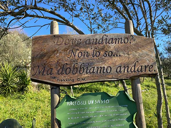 Noi abbiamo trovato la passeggiata anche fortemente simbolica e liberatoria, grazie a un cartello all’inizio del percorso