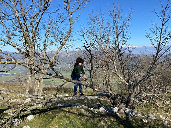 Il percorso si completa con un anello che gira sul lato della collina che affaccia su Castel Morrone e, in lontananza, sulla comola grande, una delle doline da crollo più grandi d’Italia, che ha interessato studiosi ed escursionisti ( e che vorremmo vedere ma ci vuole una guida, non si può andare da soli).
