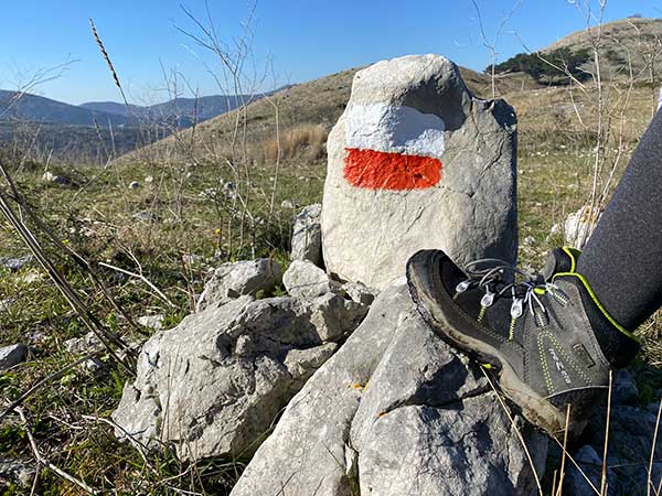 Non abbiamo capito bene se era qui che dovevamo lasciare il nostro sasso, ma lo abbiamo depositato e dopo un caffè bollente abbiamo proseguito fino a sfiorare le mura ciclopiche costruite dai Sanniti.