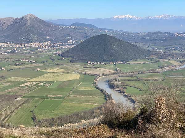 Da questo punto in poi, il sentiero costeggia la sommità della prima collina e, mentre si procede verso la seconda cima, si può osservare il fiume Volturno.