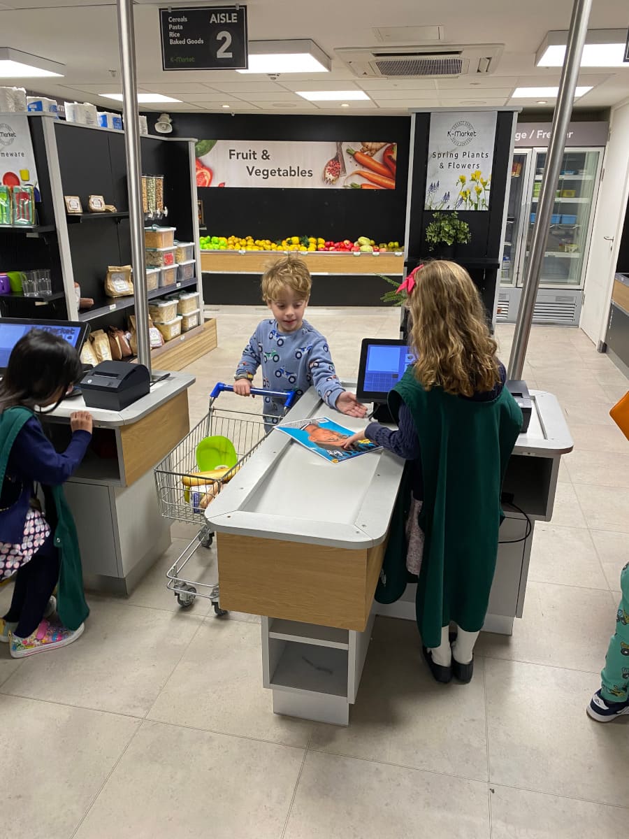 Al supermercato, ad esempio, ci sono due code: una per i cassieri e l’altra per i clienti. In questo modo i bimbi iniziano a familiarizzare con alcuni concetti ed a capire che lavorando possono guadagnare dei soldi, che possono spendere o risparmiare.