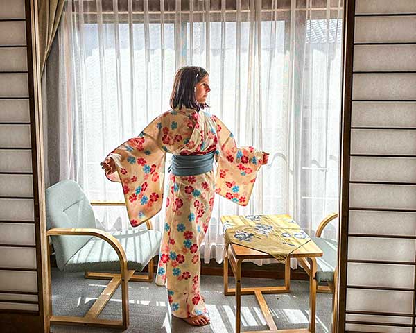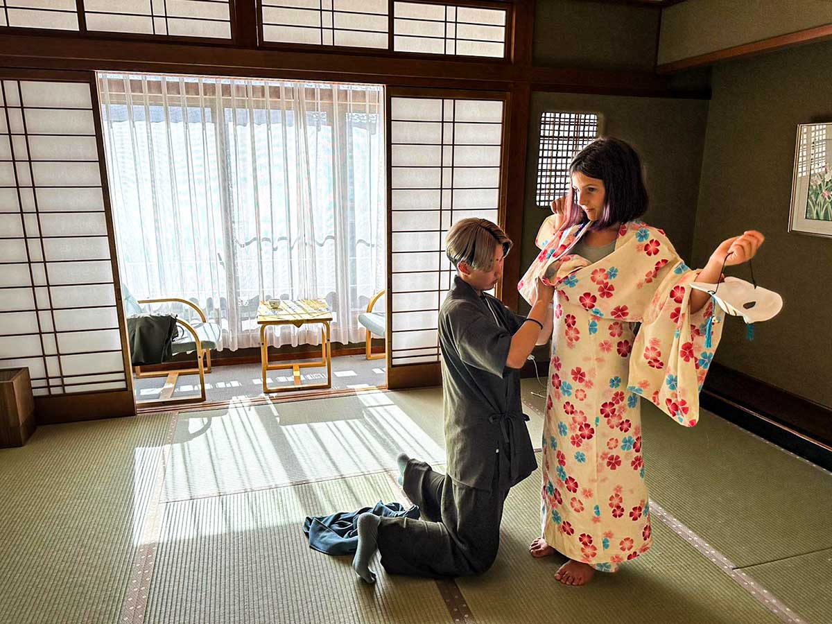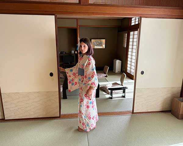 Nel prezzo era compreso l’affitto dei Kimono, la cena Kaiseki (prevede molte pietanze servite in piccole porzioni, anche fino a 15 piatti diversi. ) in camera, l’onsen privato e l’abbonamento agli onsen pubblici.