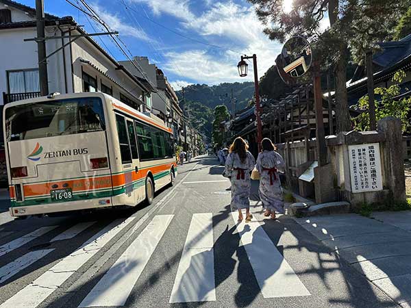 Kinosaki Onsen si trova a sole 2,5 ore di treno da Kyoto e 3 ore di treno da Osaka. Da entrambe le città, potete prendere un treno espresso e scendere alla piccola stazione Kinosaki Onsen, dove sembra di essere tornati indietro nel tempo nel vecchio Giappone di oltre 1300 anni.