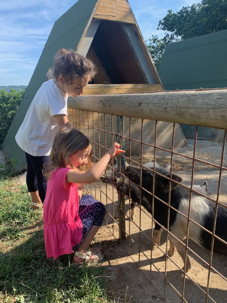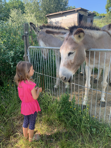 La chicca di questo posto è la presenza di animali che fanno impazzire grandi e piccini. Vicino alle piazzole camper ci sono dei simpatici asini e cavalli mentre all’ingresso un grande recinto ospita i montoni. Ma la zona preferita di Mia e Clelia è il recinto dei maiali, soprattutto i piccoli desiderosi di coccole.