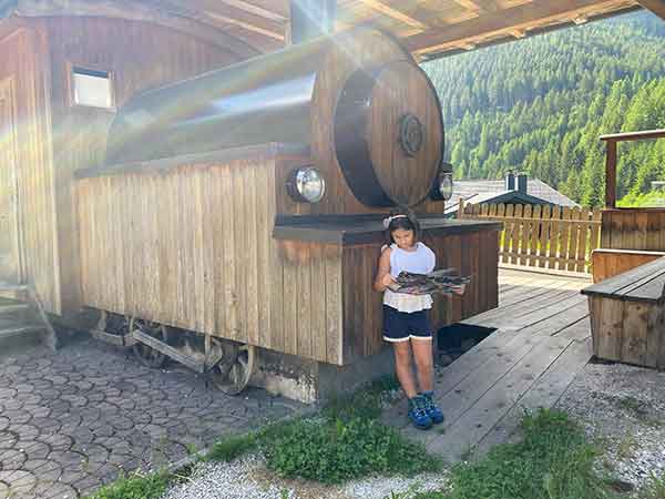 Il trenino del Val Gardena non esiste più, ma puoi chiudere gli occhi e immaginare la locomotiva a vapore che parte, il fumo che sbuffa e iniziare il viaggio. Si tratta di un trekking da Selva a Ortisei di circa dieci chilometri, facilissimo e soprattutto, per la gioia dei bambini è un sentiero costellato di parchi giochi, noi ne abbiamo contati ben sette.