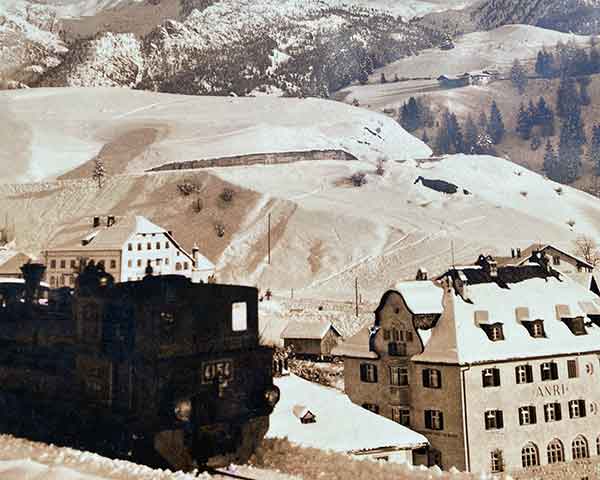 Tra la 1° e 2° Guerra Mondiale il trenino della Val Gardena rappresentò il principale collegamento con la valle e il mezzo di trasporto più usato. Su di esso venivano trasportati in valle alimentari, materiali da costruzione, combustibile e tutto quanto serviva e in senso inverso serviva per portare fuori valle i prodotti dell’artigianato artistico.