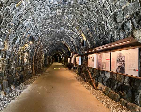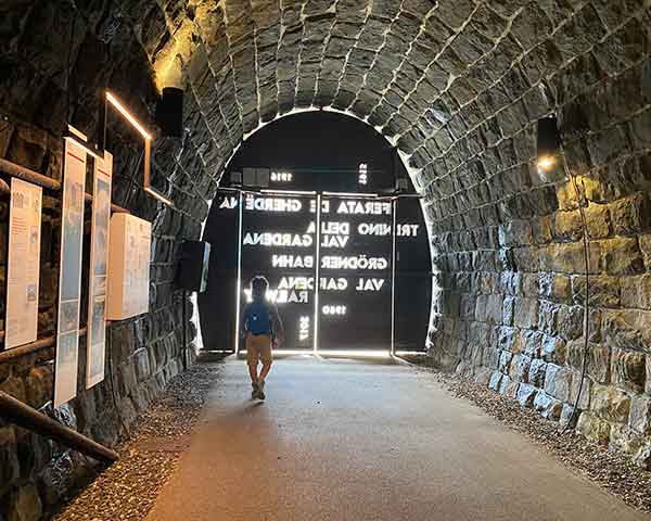 Subito dopo Santa Cristina non perdere l’occasione di entrare nella vecchia galleria del trenino. Un grande portone si apre e proprio come faceva il treno entri nel tunnel. Lungo le pareti pannelli esplicativi ed interattivi sulla storia della ferrovia, è possibile anche ascoltare la famosa canzone ladina “La ferata” e all’uscita un piccolo video.