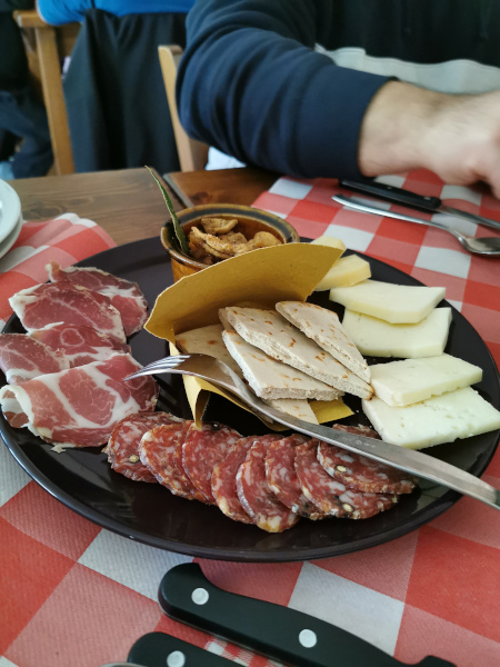 Il pranzo e la cena (ora sospesa) sono a menù fisso, proposto in base alla stagionalità dei prodotti. Noi infatti abbiamo mangiato tra le altre prelibatezze, anche degli ottimi ravioli col tartufo. E chi l’ha trovato? I cani della famiglia di Debora, più chilometro zero di così!!