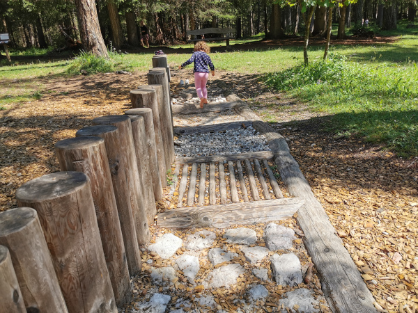 A 10 minuti da San Candido c’è Dobbiaco. Davanti alla stazione c’è un grande parcheggio, costeggiate la pista ciclabile superando il Grand Hotel e prendete il “Sentiero natura – il Bosco” (leggi la nostra giornata sul sentiero, ricca di dettagli) , questa facile passeggiata vi condurrà attraverso una dolce pineta ombreggiata, fino al Villaggio degli Alberi: casette a forma di albero collegate da ponticelli, con all’interno tanti giochi interattivi e pannelli sulla natura e sulla foresta. Nel parco ci sono anche altalene, scivoli, passaggi segreti, un nido di uccelli su cui arrampicarsi e altri pannelli didattici sugli animali e le piante del bosco.