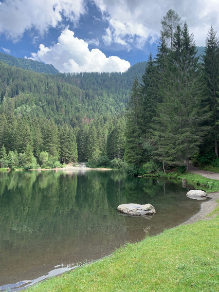 Il lago è circondato da ampi prati e dal bosco, i colori delle acque cambiano a seconda della luce oltre che rispecchiare il paesaggio circostante. Si rimane sempre stupiti dalla bellezza della natura!