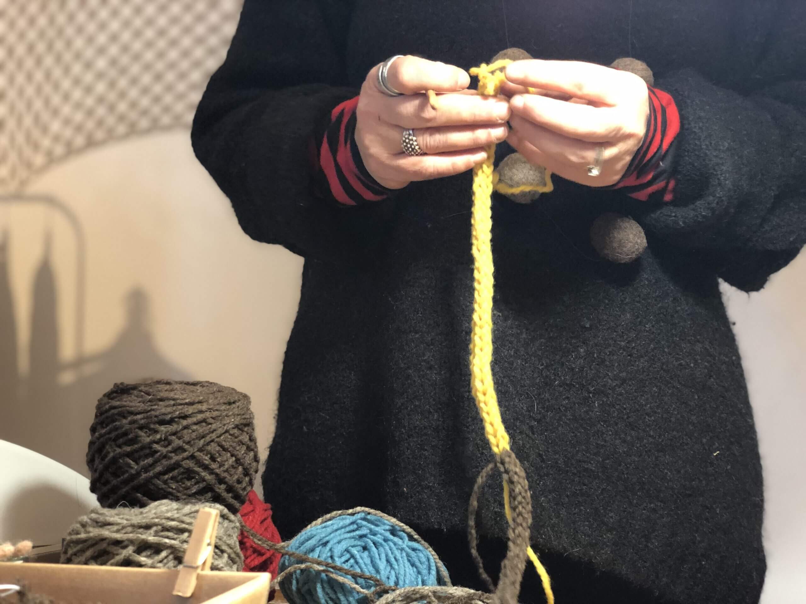 Roberta mi racconta che sceglie personalmente la lana, di pecore nate e allevate in Abruzzo, la lavora e la fila, con oliatura del fiocco realizzata con olio extra vergine dìOliva, ovviamente d’Abruzzo. Roberta è un architetto e nasce come donna del marketing, ma sente il richiamo della sua terra e sceglie di puntare tutto sull’Abruzzo. “I nostri prodotti sono 100% Made in Italy, ma ancor di più Made in Abruzzo- spiega Roberta mentre fa un pon-pon – facciamo un lungo lavoro di ricerca e sviluppo: dall’allevamento alla filanda. Lavoriamo a stretto contatto con i fornitori condividendo saperi e obiettivi per offrire ai clienti prodotti di qualità, certezza della filiera, sostenibilità (economica ed ambientale) ma anche consulenza e guida al migliore acquisto.”