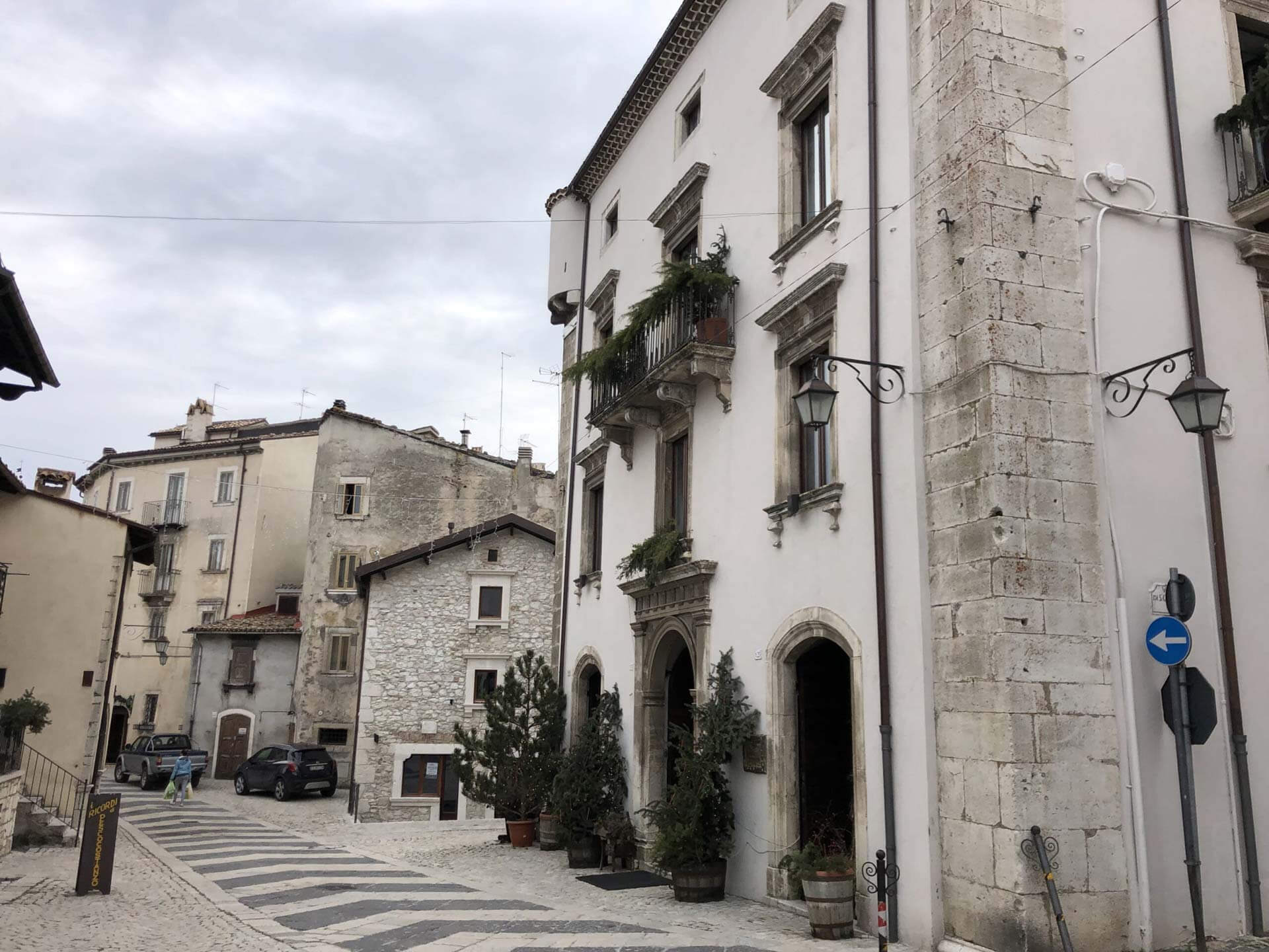 La mattina del 30 dicembre siamo andati sulle piste di Valle Fura, perché ce le aveva consigliate un amico (“Sono piccole, c’è poca gente e sono adattissime ai bambini”), ma c’era pochissima neve, quindi abbiamo cambiato programma e abbiamo deciso di andare a prendere una cioccolata calda al paese vicino. Pescocostanzo, borgo rinascimentale tra i più belli d’Italia, è una vera bomboniera a 1400 metri di altezza. Strade lastricate e ben tenute e tanti negozietti carini. Tra immensi e silenziosi pascoli Pescocostanzo ha saputo difendere e valorizzare le tradizioni artigiane. È famoso per la lavorazione del merletto a tombolo, quella della filigrana e del ferro battuto.