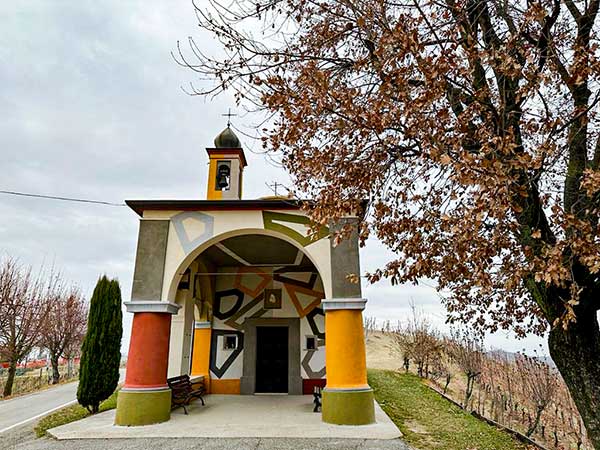 A pochi metri dalla chiesa si trova la Vigna dei Pastelli, un vigneto panoramico in cui grandi pastelli colorati hanno preso il posto dei classici pali di legno alle estremità dei filari.