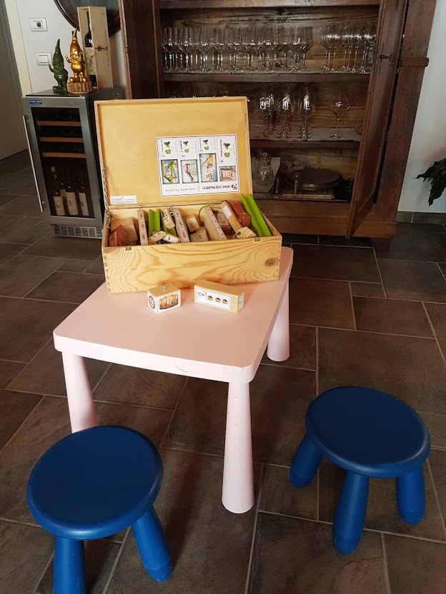 Gli gnomi, disegnati a mano dalla mamma dell’attuale proprietaria, compaiono sulle etichette delle bottiglie e si nascondono anche tra botti e macchinari. I bambini si divertono a cercarli uno a uno, mentre i genitori possono godersi la degustazione in tranquillità.