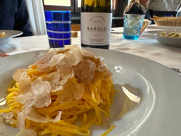 Lo diciamo subito: un bel piatto di tajarin al tartufo lo abbiamo comunque mangiato. Anche perché, per fortuna, i nostri bambini sono ottimi buongustai fin da piccoli (per loro tajarin al ragù e plin burro e salvia). E sì, abbiamo brindato anche con una bottiglia di Barolo.