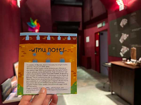 Al WiMu – Wine Museum troverete un percorso espositivo multimediale, coinvolgente e interattivo, capace di catturare l’attenzione anche dei bambini. Si scopre la storia del Castello di Barolo e del vino, raccontata attraverso arte, musica, poesia e tradizioni locali.