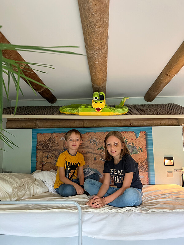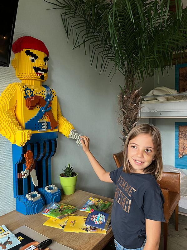 Già dall’ingresso dell’Hotel si entra nell’atmosfera Lego con costruzioni strabilianti e arredo a tema. Nella nostra camera a tema pirati abbiamo trovato un forziere pieno di Lego per giocare, costruzioni appese integrate nell’arredo della stanza e anche fuori dalla finestra! Essendo arrivati tardi non abbiamo provato il ristorante dell’hotel, ma abbiamo usufruito del servizio colazione incluso nel nostro pacchetto.