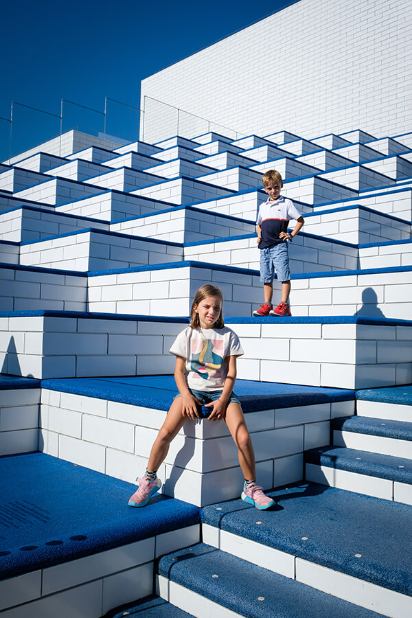 La visita inizia salendo una scala che si snoda intorno a un enorme albero costruito interamente con i mattoncini colorati e porta alla prima sala con tre grandi dinosauri Lego. Si entra nella zona rossa con una cascata di Lego e una quantità inimmaginabile di mattoncini per dare sfogo alla propria creatività Giorgio ha costruito un ponte, Anna una torre, mentre Marta si è divertita al creative lab e ha appeso la sua creazione nella parete delle opere. Non vogliamo spoilerarvi tutte le attività che troverete nella Lego House, ma le più belle sono state sicuramente la creazione di un cortometraggio in stop motion nei set lego dello Story Lab e la gara delle macchinine.
