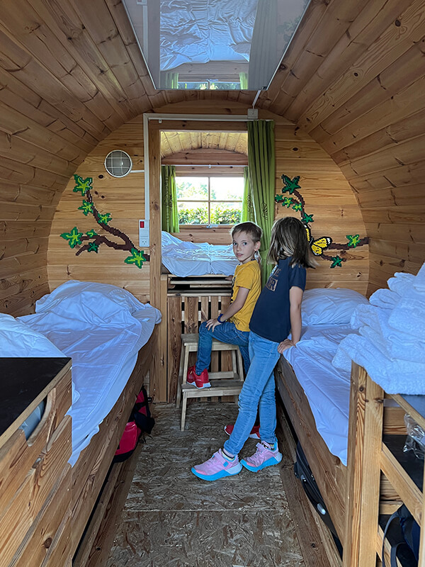 Nel campeggio si può noleggiare una piazzola per dormire in tenda o in camper oppure prenotare una casetta mobile, una botte o una tenda indiana. Abbiamo scelto la botte perché volevamo provare l’esperienza da diverso tempo, ma non avevamo ancora avuto l’occasione giusta.