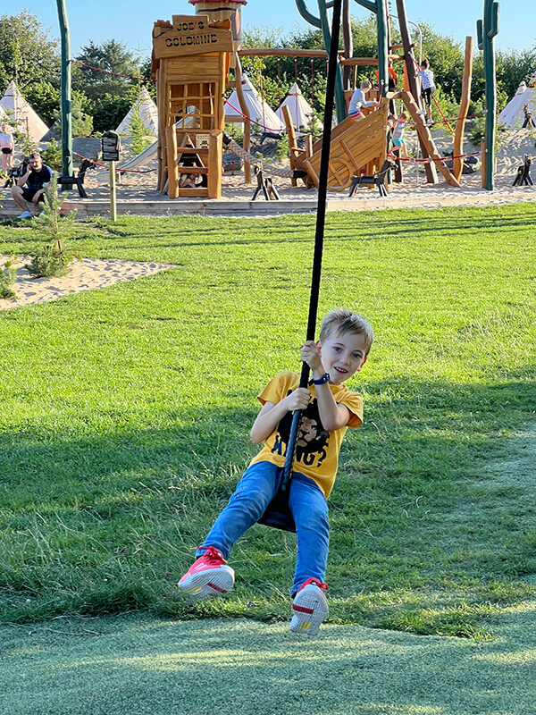 Soggiornare nel campeggio è una buona idea per risparmiare rispetto all’hotel. Le zone comuni, i servizi e la zona cucina sono pulitissime e curate. Nel campeggio ci sono diversi parchi giochi, il più grande e preferito da Anna e Giorgio è sicuramente quello vicino alle botti con il mega tappetone per saltare.