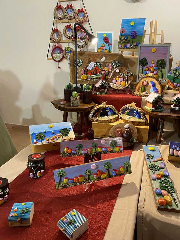La piazza principale del paese, Piazza Duval, si veste a festa con le tipiche casette di legno in cui assaggiare i prodotti tipici abruzzesi: arrosticini, ovviamente, ma anche panini, frittelle, polpette e i famosi confetti di Sulmona. Ma la cosa che ho amato di più di questo mercatino sono stati i prodotti di artigianato. Tutto è rigorosamente fatto a mano. Non troverete niente di industriale ma solo prodotti hand made: lavori in legno, gioielli fatti a mano, sciarpe e prodotti tessili, oggetti in pannolenci e molto altro, tutto creato con amore da persone che questi territori li amano e li abitano tutto l’anno. Una menzione particolare va a “I sassi di Margie”, quadretti creati con sassi dipinti a mano che raffigurano presepi ma anche i paesaggi più famosi d’Abruzzo: le montagne, il mare, i trabocchi.