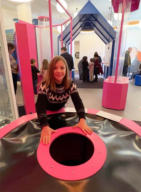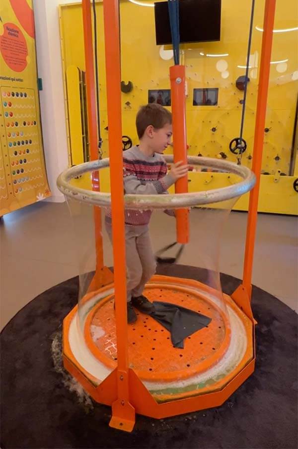 Il Museo è ricco e ben organizzato, ma non è tanto grande. Secondo noi è un vantaggio, perchè i bambini appena entrati si fiondano a provare e toccare tutto. Faranno mille e mille bolle di sapone e si incanteranno davanti alla sfera al plasma che prdusce fulmini. Ma questo è solo il primo step. È il momento wow. Passata l’ “euforia chimica”, potranno rivedere i 28 exibit uno a uno e collegare il gioco alla conoscenza e alla scoperta. Ed è questo i lvero salto di qualità, il motivo per cui portare i bambini in un museo scientifico di nuova generazione.